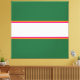 Dieses sportliche, farbenfrohe Design besticht durch einen weißen, horizontalen Streifen in der Mitte, hervorgehoben mit rosa und orangefarbenen Pinstreifen, ergänzt durch breite Zeltgrün am oberen und unteren Rand.