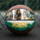 Einzigartiger personalisierter Basketball-Foto-Sake für Ihren All-Star-Basketballspieler. Unser Design zeichnet sich durch ein rustikales Gunge-Design mit grünen und gelben Grunge-Texturen und Fotorahmen aus. Personalisieren Sie mit drei Ihrer Lieblings-Fotos zusammen mit dem Namen und der Jersey-Nummer des Spielers. Design von Moodthology Papery.