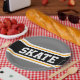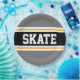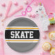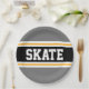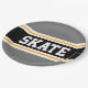 Dieses sportliche, sportliche Design mit feinem SKATE-Text in einem farbenprächtigen, schwarzen Streifen mit zwei weißen und gelben Rennstreifen gegen graue äußere Streifen. Der Text kann personalisiert sein.