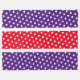 Dieses kühne, sportliche Design mit einem breiten, leuchtend roten Mitte-Rennstreifen, der in Weiß umrissen ist und von königsblauen Kantenstreifen begleitet wird. Festlich gekachelte weiße Polka-Punkte laufen durch das gesamte Design.