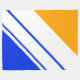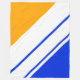 Dieses moderne, elegante Design zeichnet sich durch drei weiße, unterschiedliche Breiten, diagonale parallele Streifen gegenüber einem lebendigen, königsblauen und goldgelben Hintergrund aus.