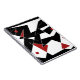 Verschiedene geometrische, weiße und rote Formen verteilen sich über einen schwarzen Hintergrund und schaffen einen starken Kontrast. Einige Formen sind mit dünnen weißen Linien verbunden, rote Punkte fügen der Komposition einen Pop Farbe hinzu.