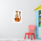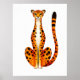 Front-facing stylized cheetah with a small refined head, slender neck, and simplified body shape. The coat is bright orange with bold black spots and a soft white chest, creating strong contrast and a clean graphic look. The cheetah faces forward with a calm, direct presence. Set on a cool off-white background with minimal texture, the focus remains on the stylized form, bold color, and spotted pattern on this wall print. AI-assisted artwork.