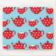 Spotty Red Teapot and Cups Blue Pattern Mousepad