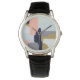 Uhr, Klassische Damenuhr mit schwarzen Lederarmband