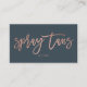 Ein eleganter, moderner, stilvoller Spray bräunt Logogeschäftskarte mit stilvoller Skripthandbeschriftungs-Arttypographie in der Imitat-Rosen-Goldfolie auf einem einfachen kundengerechten grauen Holzkohlenhintergrund. Wenn Sie irgendeine Kundenbezogenheit benötigen, zögern Sie nicht, wenn Sie mit mir in Verbindung treten