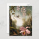 Martin Johnson Heade Orchids und Spray Orchids mit Hummingbird Postkarte. Ölmalerei auf Leinwand aus dem Jahr 1890. Martin Johnson Heade bleibt einer der großen Kolibris-Maler aller Zeiten. Heade verbrachte Zeit in verschiedenen südamerikanischen Dschungeln und malte eine Vielzahl verschiedener Orchideen und Kolibris. Die Spray Orchids mit Hummingbird haben einen lila gezüchteten Kolibri, der auf einem Zweig von Sprayorchiden über einer größeren rosa Orchidee sitzt. Ein großartiges Geschenk für Fans von Martin Johnson Heade, Orchideen, Kolibris-Gemälde und Naturalistische Kunst.