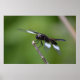 Ein unverfälschtes Foto einer schwarzen Libelle mit blassblauen Streifen auf ihren Flügeln, die so aussehen, als wären sie besprüht. Fühlen Sie sich frei, um die Größe des Bildes auf Ihre Bedürfnisse anpassen!