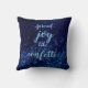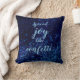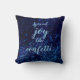 Auf diesem strahlenden Kissen schimmern die blauen Konfetti in einer königsblauen dunklen Kulisse, wo man in der Mitte einen Buchstaben, einen Namen oder ein Logo behalte, wie es der Satz "Spread joy like Confetti" ist, der erstaunliche fröhliche Atmosphäre schafft. Chic verträumt blauen Konfetti Thema.