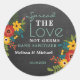 Rustikal verbreitet die Liebe nicht keimt Gastgeschenk Hochzeit Aufkleber für personalisierte Hand-Sanitier Gefälligkeiten . Rustikale Kalkboard-Look Gefälligkeiten Tags mit hübschem Blumenstrauß. Personalisieren Sie die Hand Sanitäter Gefallen Tags mit Braut und Bräutigam Namen und Hochzeitstag.