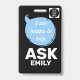 Machen Sie Ihre freiwilligen Helfer mit diesem doppelseitigen Sprechblasen-Freiwilligen-Ausweis mit Band leicht identifizierbar und einladend. Die Vorderseite zeigt freundliche Sprechblasen mit dem Text „Hi! Wie kann ich helfen“ neben „Freiwilliger“ und Platz, um einen Namen und ein Logo hinzuzufügen. Die Rückseite trägt den Text „Ich helfe gerne — frage [Name]“, um Sichtbarkeit und Zugänglichkeit aus allen Winkeln zu gewährleisten.
