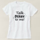 Dieser Damen-T - Shirt kennzeichnet einen Spaßtextentwurf für Derby-Pferderennenfans! Der Text liest: "Gespräch Derby zu mir!" über einer Kontur des Staat von Kentucky. Kentuckians sind auf ihr berühmtes Derby-Pferderennen sehr stolz! Es gibt viele anderen Shirtarten und -farben, zum von zu wählen.