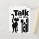 Schwarz-Weiß-Design mit einer schwarzen Katze, die weggeht und rechts "Sprich mit dem Schwanz".
