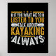 Phantastische Kayaking Design T - Shirt, Plakate, Taschen, Planer, und mehr perfekt für alle, die Kajak Liebe, enthält den Text von Gold und Weiß, dass lautet, wenn Sie Woll mir zu hören, Sie reden über Kajak ... immer!