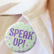 Ein weiteres niedliches schwerhöriges Abzeichen von JessicaAmber! Dieser Button zeigt den Slogan "Speak Up!" auf einem Blumenhintergrund in einem pastellfarbenen lila und grünen Farbschema. Sie können den Text bearbeiten, wenn Sie gewollt haben. Ein tolles Geschenk für Ihre Mutter oder Großmutter, die Hörgeräte trägt. ⭐ Für weitere Abzeichen mit besonderen Bedürfnissen besuchen Sie bitte mein Geschäft zazzle.com/jessicaamberartist ⭐ Für benutzerdefinierte Bestellungen, schreiben Sie mir auf Zazzle