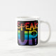 Regenbogen farbige Wörter " SPRECHEN OBEN!" mit einem Friedenszeichen.