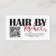 Creative, fett Minimalistische "Let's Talk Hair" Haar Stylist Business Card mit Red Hair Model Illustration, Shears, Wave Schriftart Style und QR Code. Passen Sie auf Ihre Wünsche an.