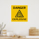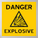 Gefahr - Explosives - gelb-orangefarbenes Poster mit schwarzer Schrift und explosivem Warnschild.