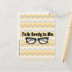 Sprich nervös mit mir, mit gebrochenen und klebigen Gläsern und coolem Retro-Schriftart. Gelber und grauer Zickzack Hintergrund. Ein großartiges Geschenk für den buchstäblichen Nerd-Geek oder Hipster, der Lieben, Bücher zu lesen und zu studieren. Alle Designs Copyright © 2012 www.CuteComfy.com