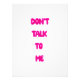 Entdecken Sie unseren auffälligen rosa Text, der sagt: "Sprich nicht mit mir." Es ist die perfekte Mischung aus Spaß und Entspannung, die Ihren Raum einzigartig machen Sie!