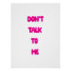 Entdecken Sie unseren auffälligen rosa Text, der sagt: "Sprich nicht mit mir." Es ist die perfekte Mischung aus Spaß und Entspannung, die Ihren Raum einzigartig machen Sie!
