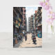Cartoon ai Illustration der Innenstadt von Kalkutta, Indien Ein Grußkarten-Sprichwort hi aus Indien mit einer Darstellung der geschäftigen Innenstadt mit Gebäude, Restaurants, Geschäften und Menschen auf ihren Motorrädern.