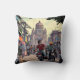 Cartoon ai Illustration der Innenstadt von Kalkutta, die Hauptstadt und größte Stadt des indischen Staat von West Bengalisch. Ein Throw Kissen Sprichwort aus Indien mit einer Darstellung der geschäftigen Innenstadt mit Gebäude, Restaurants, Geschäften und Menschen auf ihren Motorrädern.