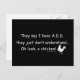 Sie sagen, ich habe ADD, sie verstehen einfach nicht... Oh, schau mal, ein Huhn! - Aufmerksamkeit Defizitstörung Spaß Sprichwort. Dieses Design mit einem dunkelwaldgrünen Hintergrund, der individuell angepasst werden kann. Schwarzer Schriftart. —