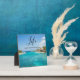 Eine Foto-Plakette, die sagt: "Das Leben ist besser am Strand. Entworfen mit einem schönen Foto mit einem tropischen Badeort. Hübsches blaues Wasser und weißer Sandstrand mit Strohhütten geben ihm eine ruhige Inselatmosphäre.