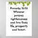 Sprichwörter 21:21 Wer Rechtschaffenheit und Liebe verfolgt, findet Leben, Wohlstand und Ehre.