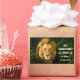 Eine individuelle Anführungsschrift zeigt ein Foto eines phantastischen Löwen von der Tierwelt. Es zeigt einen ermutigenden Teil der Sprichwörter der Bibelverse 28:1, "Die Rechtschaffenen sind kühn wie ein Löwe."