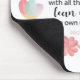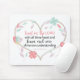 Computermousepad mit dem Bibelvers darauf: "Vertraue dem Herrn mit deinem ganzen Herzen und lehne dich nicht zu deinem eigenen Verständnis." - Sprichwörter 3:5. Weiblich mit Blume und Blätter im Aquarellstil.