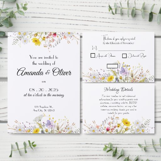 Elevate your reception table décor with this Spring Blossom Wedding Menu, featuring a delicate watercolor arrangement of pastel wildflowers that frames your courses with natural elegance. The clean, modern typography pairs beautifully with the soft floral artwork, creating a refined yet inviting presentation for your appetizers, entrées, and desserts. Perfect for garden weddings, rustic celebrations, and springtime events, this menu adds a cohesive, romantic touch to your tablescape and coordinates seamlessly with the full Spring Blossom stationery suite.