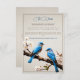 Geben Sie Ihren Hochzeitsgästen wichtige Details mit einer Spring Bluebirds Wedding Enclosure Card. Das Kartendesign besteht aus einem Paar Bluebirds, die auf einem Holzzweig ruhen, dessen Feder vor einem texturierten Hintergrund aus Papier blüht. Mit diesem Design sind auch weitere Hochzeitswaren erhältlich.