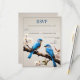 Senden Sie Ihren Gästen eine einfache und elegante Spring Bluebirds RSVP Card mit Ihrer Einladung. Das Design der Antwortkarte besteht aus einem Paar Bluebirds, die auf einem Holzzweig ruhen, dessen Feder vor einem texturierten Hintergrund aus Papier blüht. Personalisieren Sie Ihre Einstellungen mit dem Datum der Antwort und den Menüoptionen. Mit diesem Design sind auch weitere Hochzeitswaren erhältlich.