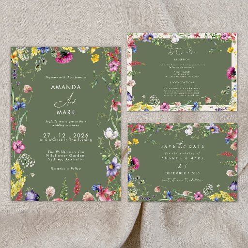 Spring Boho Chic Colorful Wildflower Wedding Einladung