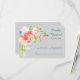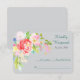 Diese hübsche Hochzeitskarte bietet einen hübschen Frühlingsblumenstrauß in den Farben Korallenrosa, Lavendelrosa, Weiß, Blassgelb, Gold und Blau, eingebettet in grüne Blätter in der oberen links Ecke. Das Design erstreckt sich auf den unteren links Bereich und bildet einen hübschen Rahmen für Ihren benutzerdefinierten Text. Der Text ist rechts grau und blau grün. Das Blumenbild und der Text der Aquarellbilder werden auf einem helleren, weichen grauen Hintergrund platziert, der die leuchtenden Farben der Blume ergänzt. Die Rückseite der Einladung ist die gleiche graue Farbe. Diese Antwortkarte enthält die passenden Hochzeitseinladungen und andere Hochzeitsartikel in unserem Geschäft.
