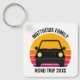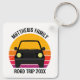 Cool custom road trip keychain for spring break or summer vacation with your family or friends. Personalize with your last name or group above the retro sunset and car silhouette. Perfect keepsake souvenir for a trip to a cottage or across the country. Drive off into the sunset.