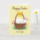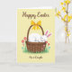 This design shows a springtime scene with a woven brown basket resting on green grass, with a sunny yellow bow tied to the handle. Curled inside is a small white long-eared bunny 🐇, eyes closed and cheeks softly pink, giving the moment a gentle, affectionate tone. Nearby wildflowers in fuchsia, soft pink, and sky blue with yellow centers dot the ground like little gifts shared between two close companions 🌷. The background is a creamy yellow wash that feels like early morning light, keeping everything soft and calm. At the top, the words “Happy Easter” appear in a neat, dark-toned style that stands out against the pale backdrop. Below the basket, “As a Couple” is placed in a smaller matching color, reinforcing the togetherness suggested by the cozy pose and warm palette. Smooth outlines and light texture give the basket strands, bow loops, and flower petals a gentle depth. The bunny’s long ears tuck along its body inside the basket, with the yellow bow arching above and tiny blossoms scattered around the base.