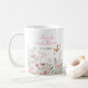 This beautiful and elegant wedding mug with wildflowers in pink, and cute butterflies. Perfect for a spring or summer wedding. The words can be changed to suit your own details or requirements