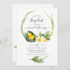 Geschlechtsneutrale Babyfeder - Osterbaby-Duscheinladung mit eleganter Handschrift-Typografie mit niedlichem Entklopfen in einer blühenden Lilie des Tales mit Narzissen.