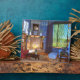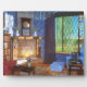 Eine gemütliche Leseecke an einem sonnigen Frühlingstag. Durch die Gitterfenster strömt warmes Sonnenlicht herein, verlasse Schatten an der Wand und beleuchtet die Kirschblüte "Schneeglobe" im Regal. Im Fenster ist ein bunter Suncatcher funkelnd im Licht. Rund um den Saal stehen bequeme Sessel mit Vasen aus Blume und Büchern und ein Dampfbad, aber die Fenster sind offen, um in der Frühjahrsbrise lassen. Außerhalb einer federgrünen Weide und Buche Hecke und roten japanischen Ahorn umgeben von Tulpen und Maisblumen, während eine Ingwer Katze durch das lange Gras streift.