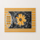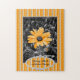 Spring Flash African Daises are beautiful flowers. This custom puzzle template is adorned with a gray framed desaturated close up photograph leaving the color in the open ivory daisy blossom and closed bud to stand out over an orange, ivory and gray vertikale striped background. The framed striped oval sets off the text. Fill in the template field with your words, name or initials and/or customize to select a different ist stilvoll, size and color.