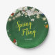 Begrüßen Sie Ihren Gast und den Frühling mit dieser Papiertafel mit weißen Blume, die auf Ästen mit Schmetterlingen, Ladybugs und Bienen, die herumschmettern, blühen. Der Hintergrund ist eine grüne, ombre Aquarell. Der ideale Teller für ein Brautparty im Freien oder im Garten, eine Verlobungsfeier, Geburtstag, ein spezielles Mittagessen oder ein anderes Frühjahrsfest. Verfügbar mit passenden Produkten.