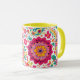Vibrant Spring Floral Paisley inspired pattern Coffee mug featuring, pink, yellow and green flowers incorporated into a paisley style pattern.