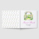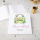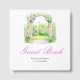 Pretty wedding guest book with a floral arch and pink purple flowers. Perfect for a spring or summer wedding. The words can be changed to suit your own details or requirements