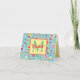 This cute monogrammed folded note card features a pattern of pink, red and yellow flowers on a pretty aqua blue background. Personalize the monogram with your choice of name and initial.