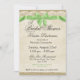 Hübscher Federgrünbogen, romantisches Landdesign mit antiker, weißer Spitze und rustikalem Burldesign. Alle Teile dieser Brautduscheinladung sind bedruckt, es ist kein richtiger Einbruch, keine Spitze oder kein Band angebracht.
