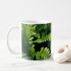 Ein nahes Bild von Frühlingsgrünen Farnen, beleuchtet durch gedämpftes Licht durch den Baumkronen.