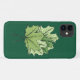 Das Frühjahr iPhone Gehäuse mit grünem Ahorn verlasse digitale Kunst mit einer dekorativen Illustration von Frühlings-Blätter auf dunkelgrünem, gesprenkeltem Hintergrund.